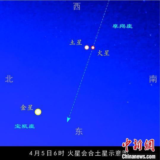 火星土星近距離相會,何時觀測最佳?各地最佳觀測時間是日出前70分鐘,觀察方位在東方偏南的低空。屆時,金星是啟明星,十分明亮,視亮度達到負4.4星等。在金星的西南面(右上方),可找到土星和火星。4月5日,廣州日出時間是6時16分,即廣州在5時06分前后觀測最佳。如果借助雙筒望遠鏡觀察,效果更好。(郭軍 李建基)