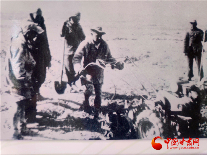 上個(gè)世紀(jì)40年代,山丹四壩灘上,山丹培黎學(xué)校農(nóng)業(yè)組的學(xué)子在種地中學(xué)習(xí),還實(shí)施了灌溉引水澆地。