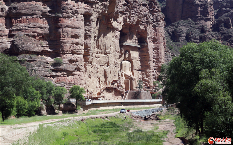 炳靈寺石窟,開(kāi)鑿在黃河北岸小積石山的大寺溝西側(cè)崖壁上。西晉時(shí)期,炳靈寺開(kāi)窟造像活動(dòng)便已開(kāi)始。十六國(guó)時(shí)期,內(nèi)地及西域高僧云集于此,一度成為當(dāng)時(shí)佛教一大勝地。炳靈寺石窟不僅以石刻雕像作品見(jiàn)長(zhǎng),其浮雕佛塔和密宗壁畫(huà)更是與莫高窟和麥積山石窟齊名。現(xiàn)存窟龕183個(gè),共計(jì)石雕造像694身,泥塑82身,壁畫(huà)約900平方米。