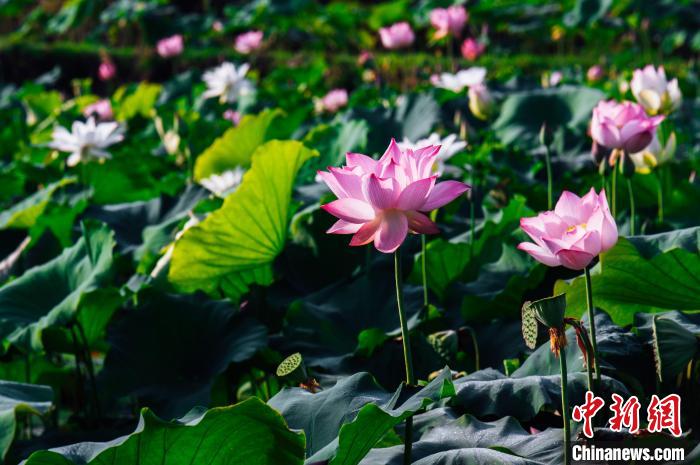 荷花競相開放,嬌艷清新惹人醉?!±钅宪?nbsp;攝