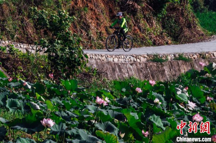 游客在花海中騎行。 李南軒 攝