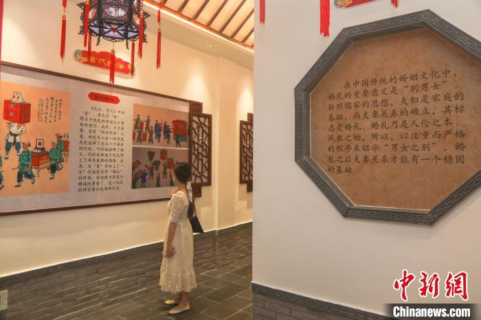 8月4日,正值“七夕”佳節(jié),探訪位于江西南昌青山湖區(qū)婚姻登記處的贛鄱婚俗博物館,一些新人和市民正在參觀展覽。這是江西首個全部以婚俗為主題的博物館,選取了江西各地最具特色的婚俗禮儀進行展示,通過不同時期的婚禮習俗以及婚書、陪嫁的箱子、食盒、電視等老物件,展現(xiàn)贛鄱百姓的民俗生活,喚起人們對傳統(tǒng)婚俗禮儀的記憶。