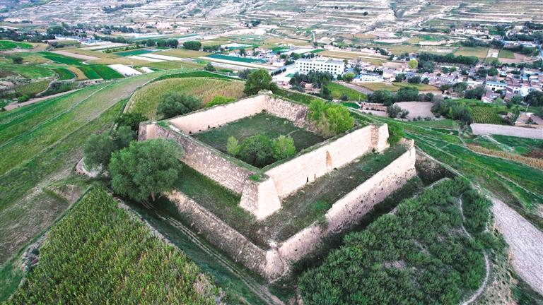 漫步騾子灘,附近的水家坡堡子也值得一去。這個堡子呈正方形,占地超4畝,不管從哪個視角看,都稱得上震撼。堡子分上下兩層,下層高5米、寬5米、邊長55米,上層高6米、底部厚3.5米、頂部厚2米、邊長35.5米。堡子外圍修有一圈寬5米、深6米、總長230余米的壕溝,曾為護城河。堡子約建于1946-1948年間,用來辦公和防御戰(zhàn)爭。1949年8月,解放軍在水家坡地界圍剿國民黨馬步芳部隊,經過一天一夜戰(zhàn)斗,馬步芳部隊潰敗逃往新營方向,當時有一發(fā)炮彈落在堡子一角,至今炮坑清晰可見。