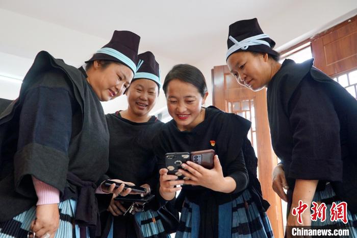 圖為白褲瑤居民正在通過(guò)手機(jī)了解信息。韋國(guó)政 攝