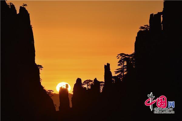 黃山的神奇在于變幻,山還是那座山,巧石還是那塊巧石,隨著云海的變化或太陽(yáng)升起位置的變化,會(huì)產(chǎn)生不同的畫(huà)面,這不又到了一年一度的太陽(yáng)從“仙人背包”、“仙人下棋”和“仙人觀棋”處升起的場(chǎng)景,您看是不是很神奇。