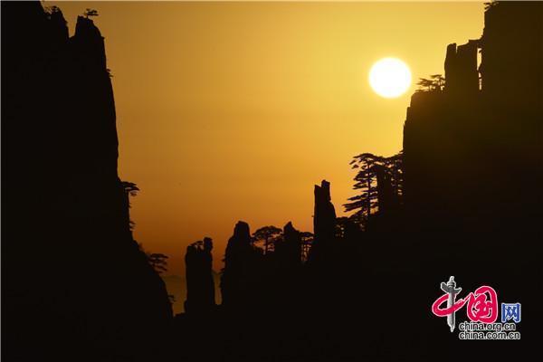 安徽黃山:日出巧石神奇變幻 畫(huà)面猶如仙境