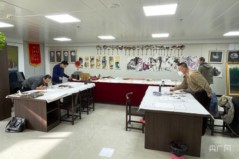 市民在美術(shù)館內(nèi)進(jìn)行書(shū)畫(huà)創(chuàng)作(央廣網(wǎng)發(fā) 慶陽(yáng)市委宣傳部 供圖)