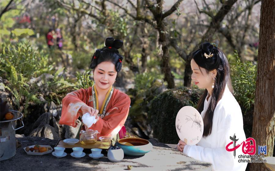本屆梅花節(jié),采用線上線下并舉的形式,推出“踏梅迎春”游園會、“梅藝傳承”民族非遺市集、“梅語祈福”長生樹祈福、“梅生留影”賞梅打卡、“梅影倩麗”旗袍秀、“梅麗動人”國風(fēng)漢服和民族服裝體驗(yàn)行、“圍爐煮茶”梅季茶香、“有梅有酒”食在荔波家鄉(xiāng)味、“梅花節(jié)”本土音樂會等一系列豐富多彩的活動,以花為媒,以梅會友,將梅花文化與古風(fēng)古韻、民族文化等相融合,為游客帶來更多全新多元的文旅體驗(yàn)。