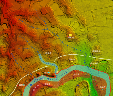 石家河古城的北部水系分布圖。湖北省文物考古研究院供圖