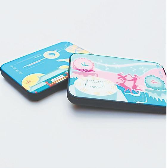 圖案來(lái)源于伏羲女媧因分別從山頂推下的兩磨盤緊緊結(jié)合的現(xiàn)象驗(yàn)證了上蒼意圖,決定繁衍后代的傳說(shuō)?;瘌B騰飛之日與玉兔奔騰之月隔著天河星辰分懸兩邊,繪有河圖的磨盤見證生命的起源,雙人自由舞動(dòng)的身軀揚(yáng)起歡騰的節(jié)律,完美契合于陰陽(yáng)諧振的樂(lè)音。美好寓意的組合充溢起整個(gè)載體,令人傾心又矚目于彩色流韻的真景里。