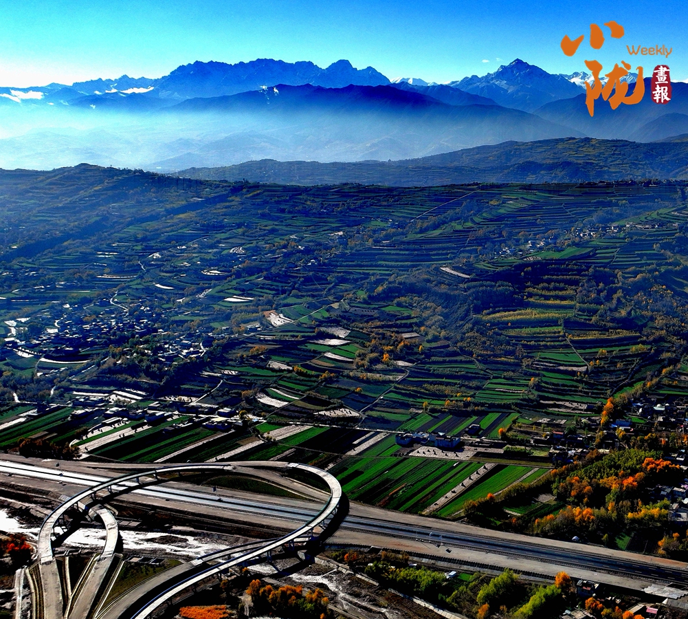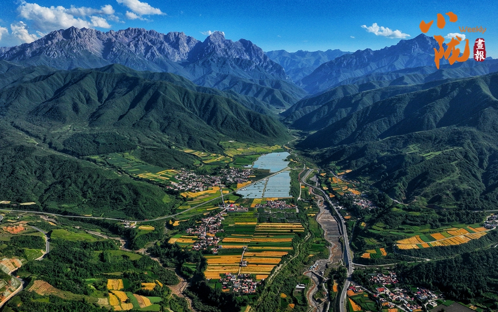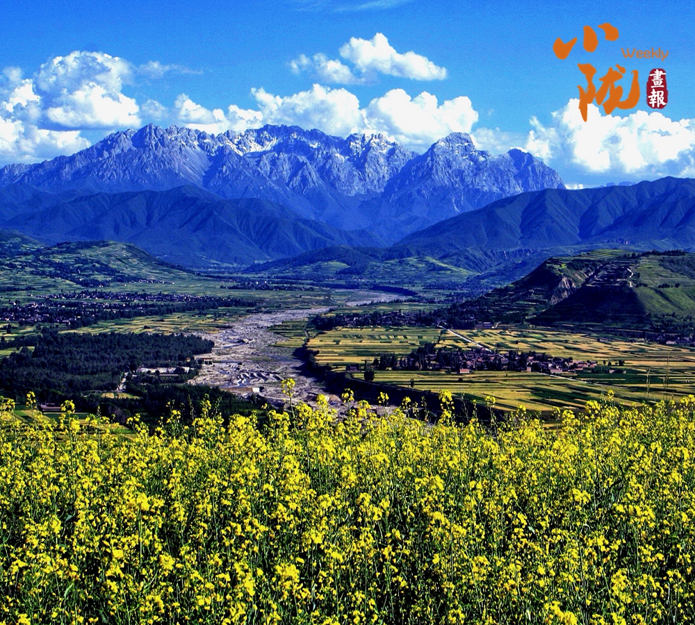 百里平川襯托著綿延群山,一邊是麥黍飄香的一個個綠色盆地,一邊是披蒼著翠的太子山脈。