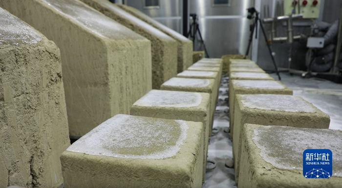 這是9月11日在敦煌研究院國家古代壁畫與土遺址保護(hù)多場耦合環(huán)境模擬實(shí)驗(yàn)室冬季倉拍攝的正在試驗(yàn)中的土遺址監(jiān)測樣品。新華社記者 張智敏 攝
