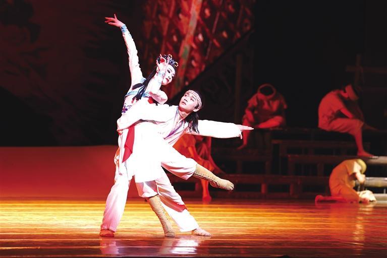 經(jīng)典舞劇《大夢敦煌》是一部富于傳奇色彩的四幕舞劇,首演至今,已獲得中宣部“五個一工程”獎、中國舞蹈“荷花獎”、中國“文華獎”等多個獎項,被譽為中國原創(chuàng)舞劇中的頂級之作,民族舞劇的經(jīng)典之作。當(dāng)晚,集故事美、音效美、舞美美、表演美于一身的《大夢敦煌》,以一場淋漓盡致、亦夢亦幻的完美演出,收獲了現(xiàn)場觀眾經(jīng)久不息的掌聲。圖為演出現(xiàn)場。