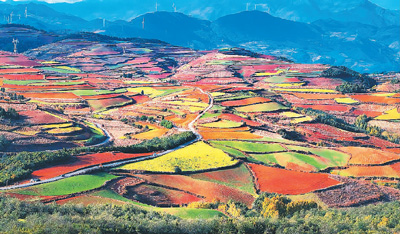 冬日艷陽(yáng)下,云南省昆明市東川區(qū)紅土地鎮(zhèn)獨(dú)特的紅土地景觀,吸引各地游客前來(lái),也帶動(dòng)周圍百姓增收。