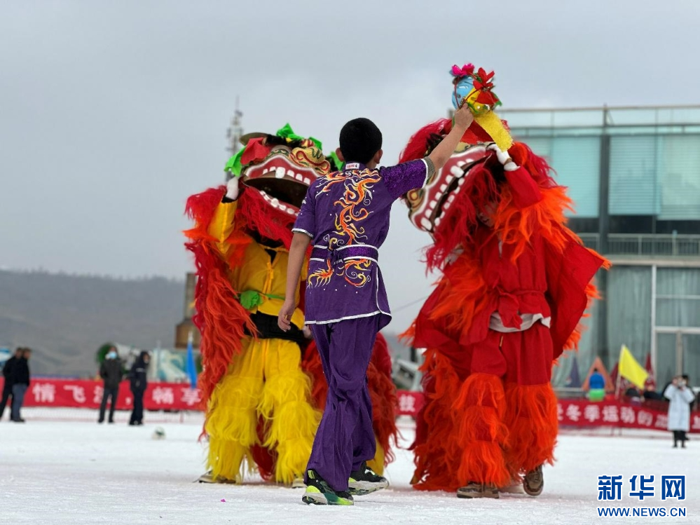 啟動儀式上,舞獅隊(duì)正在表演。