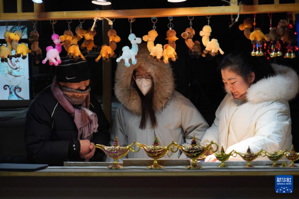 1月21日,在甘肅省敦煌市的敦煌夜市,游客選購紀念品。新華社記者 馬希平 攝