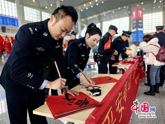 本次活動由莆田車站派出所牽頭組織,聯(lián)合中信銀行、莆田站共同開展。活動期間,民警與志愿者在莆田站甬廣場候車室為旅客發(fā)放高鐵安全宣傳單及春聯(lián),并由青年民警現(xiàn)場書寫春聯(lián)、福字送給來往旅客,將平安、溫馨傳遞給每一個人。