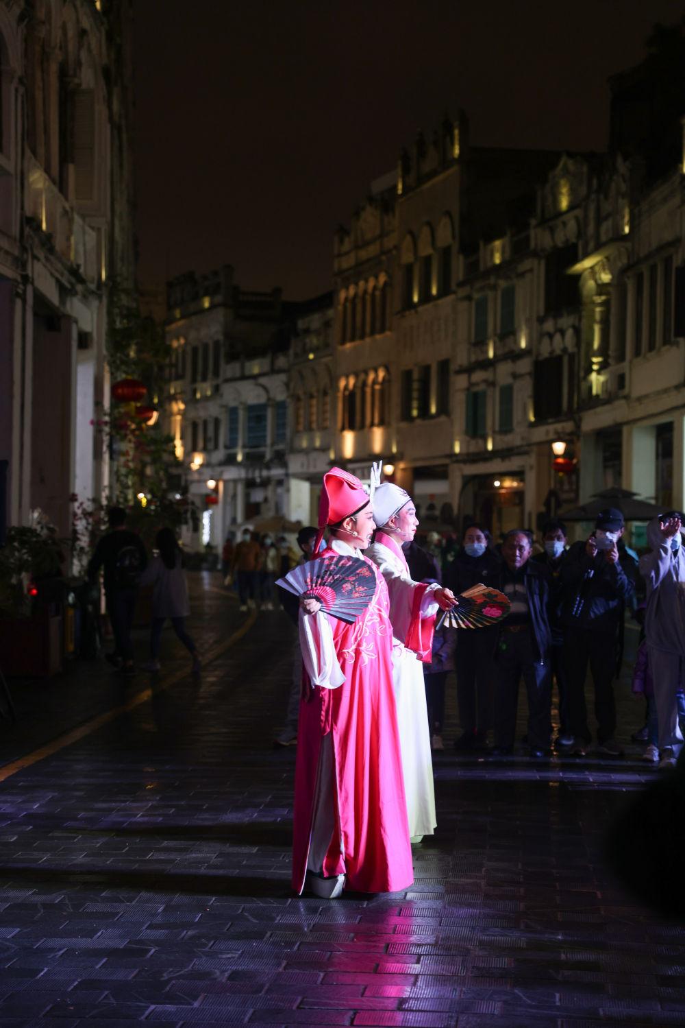 ↑觀眾在海口騎樓老街觀看瓊劇表演。瓊劇又稱“海南戲”,是國(guó)家級(jí)非物質(zhì)文化遺產(chǎn)之一。在海南欣賞瓊劇,是認(rèn)識(shí)當(dāng)?shù)匚幕?、體驗(yàn)當(dāng)?shù)匚幕囊粋€(gè)好方式。新華社記者 張麗蕓 攝(資料圖片)