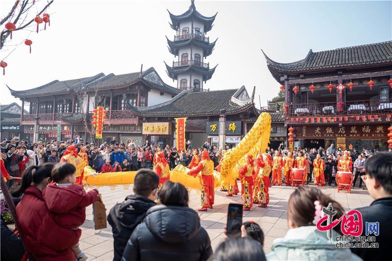 從古牌樓“打春牛”到財神居“迎財神”,從水巷“巡游”到老街“打連廂”,從傳統(tǒng)“舞龍舞獅”到創(chuàng)新“踩高蹺”,場場沾得龍行龘龘的好意頭。