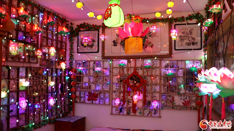 走進(jìn)馬玉琳的家,精美的宮燈、雅致的荷花燈、喜慶的掛件、彩色的燈帶錯(cuò)落有致地掛在木制格子架上,濃濃的年味兒撲面而來(lái),數(shù)百盞彩色花燈同時(shí)點(diǎn)亮,將屋內(nèi)裝扮成“滿房燈火迎新春”的喜慶景象。