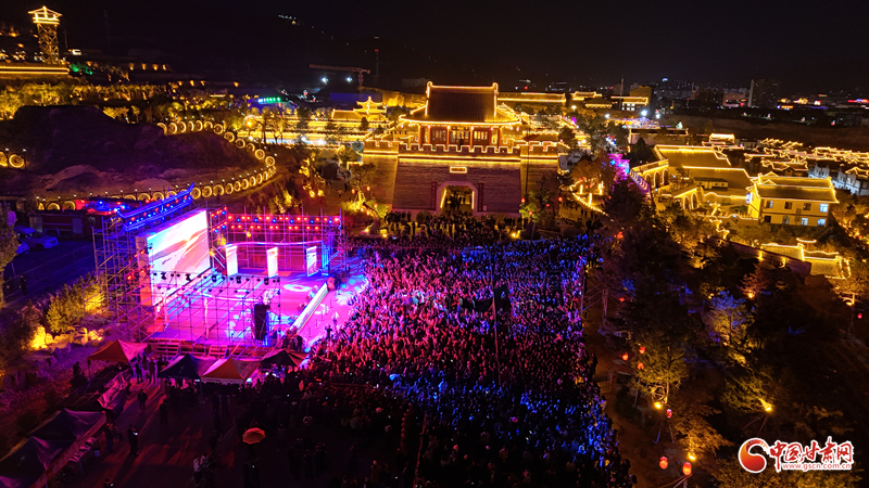 擼完串后,吳橋雜技、通關(guān)文牒打卡互動(dòng)、“千年穿越·詩意故城”互動(dòng)表演、舞獅表演、秦腔演唱等每一種小場(chǎng)景演藝都能引得游客駐足,遍布在故城各個(gè)角落的歡呼聲和掌聲一陣高過一陣。“在故城燈火照映下,龍泉疊水景觀區(qū)竟現(xiàn)出一幅‘江南景象’,身陷其中真是讓人流連忘返。”眾多游客偕老帶幼一起泛舟水上,在輕風(fēng)拂面、碧波微漾中濯凈心靈,“這樣治愈系的美景更去何處尋。”