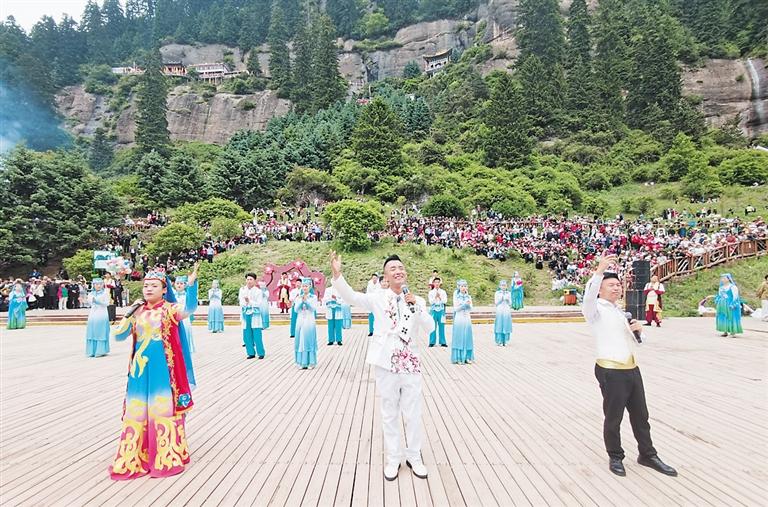 六月的松鳴巖滿(mǎn)目蔥郁、碧水悠悠,讓人如在畫(huà)中游。三孔橋會(huì)場(chǎng)內(nèi)早已是人山人海,熱鬧非凡,伴隨著歡快的歌曲,由1600多人組成的花兒串燒巡演團(tuán)隊(duì)在這里載歌載舞,共同唱響《花兒留住天下客》,將活動(dòng)推向了高潮,歌聲和掌聲是人們對(duì)幸福生活的感恩之情和對(duì)美好明天的憧憬。