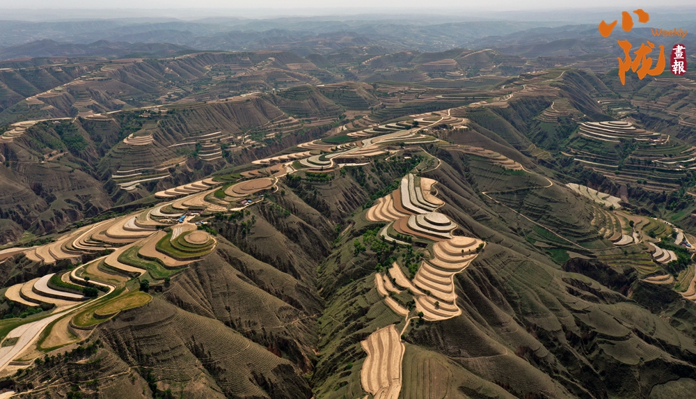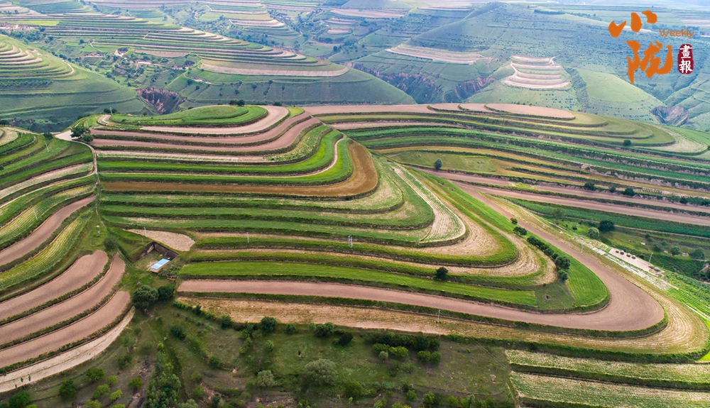 從高空俯瞰下去,在廣袤的大地上,丘陵被開(kāi)辟成了一層又一層的梯田,金黃的麥浪和嫩綠的秧苗鋪滿(mǎn)田間。