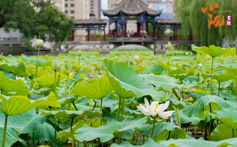 大片的荷葉層層疊疊,一支支荷花婷婷水中,在蓮葉的映襯下展現(xiàn)出更加?jì)擅膭?dòng)人的風(fēng)韻,為炎炎夏日增添了幾分詩(shī)情畫意,讓前來(lái)觀賞的群眾領(lǐng)略了荷葉田田的生態(tài)美景。