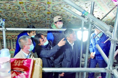 “我們有厚衣服,要不您穿著點(diǎn)?”壁畫保護(hù)修復(fù)技師柴宗香關(guān)心地問記者。