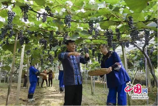近年來,大坡村以葡萄、獼猴桃等種植基地為基礎(chǔ),積極發(fā)展農(nóng)業(yè)觀光旅游,建設(shè)了葡萄觀光科普長廊、農(nóng)耕文化展示廳、葡萄加工基地、湘西特色產(chǎn)品帶貨點(diǎn)等觀光打卡點(diǎn),形成了“產(chǎn)業(yè)基地+休閑觀光采摘”的農(nóng)旅產(chǎn)業(yè)融合模式。每到周末和節(jié)假日,小村莊便熱鬧起來,來果園采摘、吃農(nóng)家飯、品葡萄酒、購湘西臘味的游客絡(luò)繹不絕。研學(xué)產(chǎn)業(yè)的發(fā)展,進(jìn)一步促進(jìn)了大坡村產(chǎn)業(yè)升級(jí)和經(jīng)濟(jì)全面協(xié)調(diào)發(fā)展。