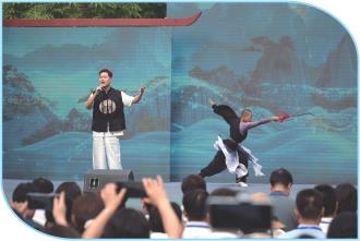 上午9時(shí),由甘肅省文化和旅游廳、甘肅省文學(xué)藝術(shù)界聯(lián)合會、平?jīng)鍪腥嗣裾鬓k,中共平?jīng)鍪形麄鞑?、平?jīng)鍪形捏w廣電和旅游局、崆峒山大景區(qū)管委會、平?jīng)鑫幕糜萎a(chǎn)業(yè)投資集團(tuán)有限責(zé)任公司承辦“詩意甘肅·絲路長風(fēng)三千里——武詠崆峒·平?jīng)鲈姇?rdquo;主詩會活動在崆峒山中臺拉開帷幕。此次詩會融合詩歌、武術(shù)、舞蹈、音樂等多種藝術(shù)形式,邀請國內(nèi)知名朗誦藝術(shù)家與本地文藝工作者聯(lián)袂演出,構(gòu)建起一場恢宏的詩意盛宴,激蕩起一座城的壯志豪情、歷史榮光。