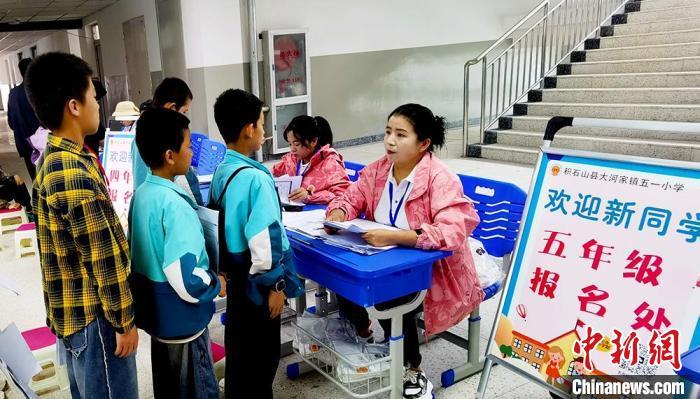 1日,積石山縣大河家鎮(zhèn)五一小學(xué)開(kāi)學(xué)。該校是新建學(xué)校,圖為開(kāi)學(xué)報(bào)名現(xiàn)場(chǎng)。滕漢霞 攝