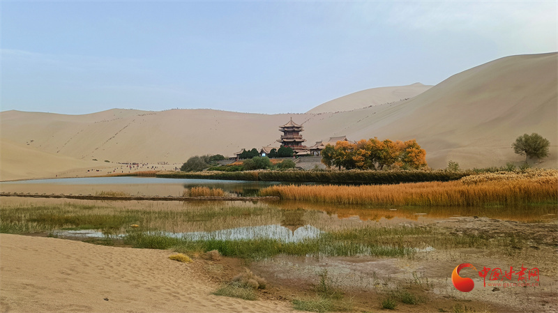 深秋的月牙泉,蘆葦搖曳,秋水伊人。鳴沙山月牙泉又進入到秋水共長天一色的模式,以寧靜、優(yōu)雅迎接著來自全國各地的游客。