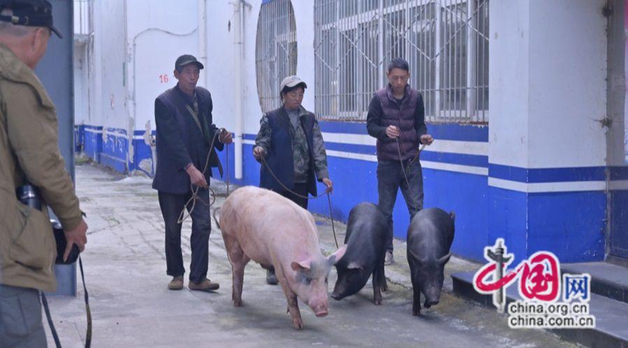 2024年11月20日,彝族老鄉(xiāng)在站臺(tái)上接豬。原波 攝
