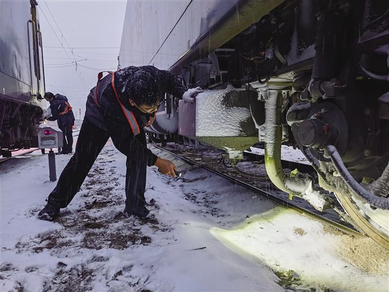 受今年入冬以來(lái)最強(qiáng)寒潮、雨雪天氣影響,11月23日20時(shí)開(kāi)始,中國(guó)鐵路蘭州局集團(tuán)有限公司蘭州西機(jī)務(wù)段調(diào)車車間擔(dān)當(dāng)管內(nèi)的武威南、打柴溝等地區(qū)氣溫接近零下15℃,蘭新線蘭州北至武威南、蘭青線部分線路已普降中到大雪,調(diào)車車間干部職工以雪為令,精心組織、主動(dòng)應(yīng)對(duì),采取有力措施最大限度降低不良天氣給行車安全帶來(lái)的影響,全力保證疆煤外運(yùn)人員供應(yīng),確保列車安全暢通。