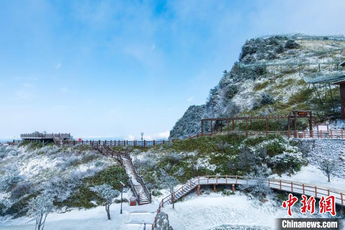 11月25日,受強(qiáng)冷空氣影響,四川省萬源市遭遇強(qiáng)降溫天氣。八臺(tái)山景區(qū)迎來了一場降雪,雪花紛紛灑灑,八臺(tái)山被裝點(diǎn)成了銀裝素裹的冰雪世界。鄭興平 攝