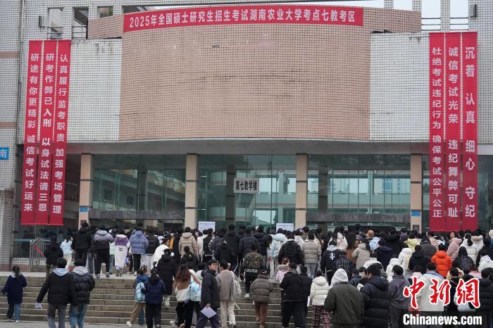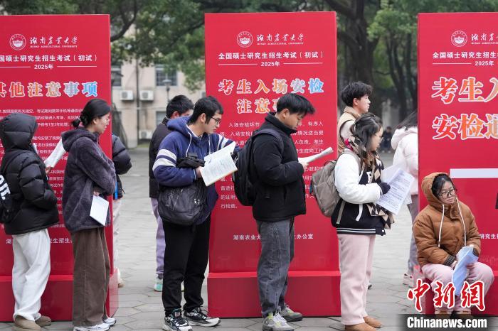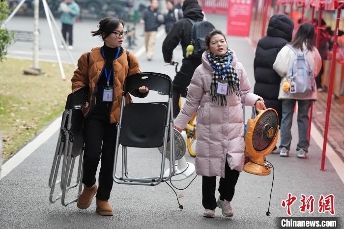 12月21日,2025年全國碩士研究生招生考試初試開考,眾多考生來到湖南農(nóng)業(yè)大學(xué)考點(diǎn)參考。據(jù)教育部數(shù)據(jù)顯示,2025年全國碩士研究生報(bào)名人數(shù)為388萬,相比去年下降50萬人,已是連續(xù)兩年報(bào)名人數(shù)下降。圖為志愿者將椅子與取暖設(shè)備送入考場。中新社記者 楊華峰 攝