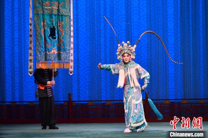 30日晚,“閩臺共譜梨園曲·不負(fù)韶華正青春”兩岸傳統(tǒng)文化交流系列活動在福州鳳凰劇院舉辦。圖為臺灣青年演員楊瑞宇在京劇《扈家莊》里飾演扈三娘。中新網(wǎng)記者 呂明 攝