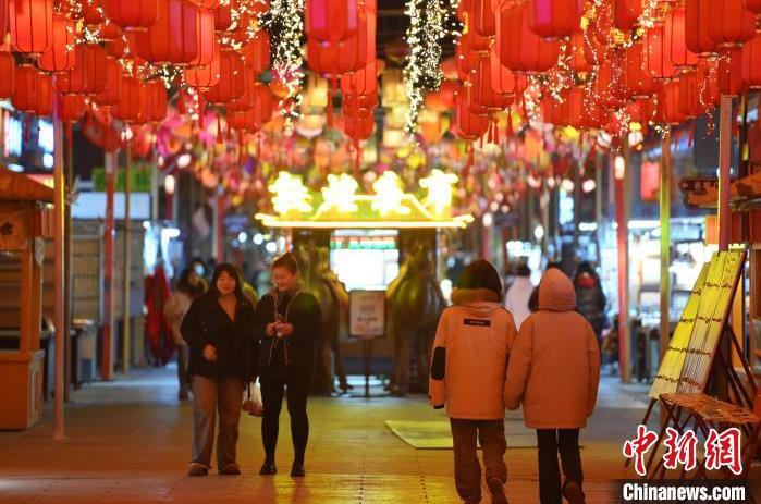 1月13日晚,甘肅敦煌夜市內(nèi),游人感受新春燈飾。據(jù)了解,從2024年12月1日至2025年2月28日,當(dāng)?shù)伉Q沙山月牙泉、玉門關(guān)、敦煌雅丹世界地質(zhì)公園等景區(qū)對(duì)國(guó)內(nèi)外所有游客免門票,莫高窟門票實(shí)行半價(jià)優(yōu)惠,開放洞窟由8個(gè)增加至10個(gè),為游客提供了更為豐富的觀賞內(nèi)容。中新社記者 李亞龍 攝