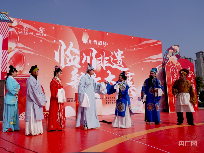演員們身著艷麗的戲服,先后表演了《王媽媽愛雞》《游園驚夢》等節(jié)目。撫州采茶戲是江西臨川傳統(tǒng)戲曲文化的重要組成部分之一,是在明代茶燈戲的基礎(chǔ)上,吸取當(dāng)?shù)孛窀栊≌{(diào)發(fā)展而成,據(jù)《臨川縣志》記載,迄今已有四百余年的歷史。