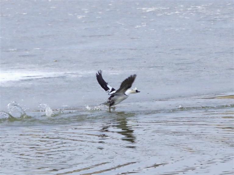 斑頭秋沙鴨是我國(guó)“三有”保護(hù)動(dòng)物,它還有一個(gè)萌萌的名字,叫“熊貓鴨”。瞧,它那黑白相間的羽毛,眼睛周?chē)托茇堃粯?,像戴了一副墨鏡,時(shí)而潛入水下追捕魚(yú)兒,時(shí)而與同伴嬉戲,時(shí)而振翅飛翔,可愛(ài)活潑的模樣在水面上格外顯眼。