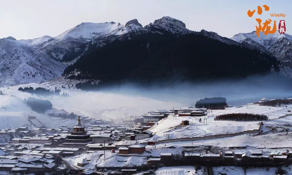 初春的碌曲縣,雪覆蓋了山林,覆蓋了藏寨,山川草場變成了純凈無暇的世界。