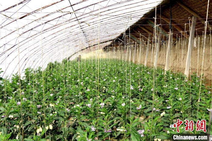 圖為民勤縣溫室人參果種植基地,一株株人參果生長(zhǎng)茂盛,葉片翠綠欲滴。(資料圖)馬愛(ài)彬 攝