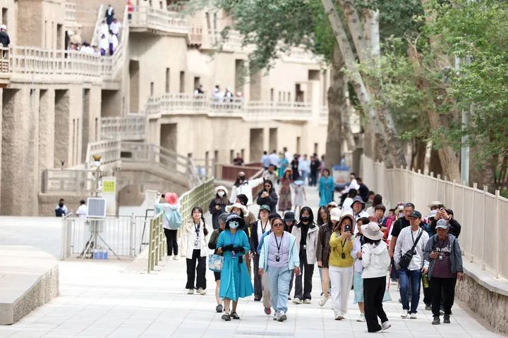 2024年6月7日,游客在莫高窟參觀游覽。新華社記者 郎兵兵 攝