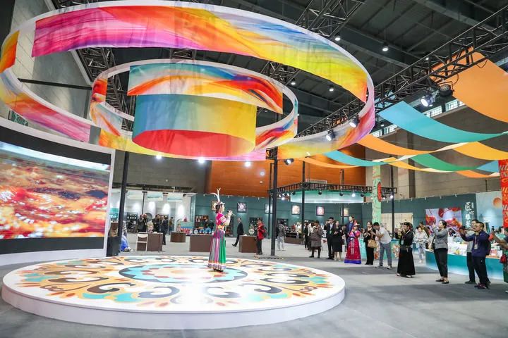 2024年9月21日,與會嘉賓在第七屆絲綢之路(敦煌)國際文化博覽會上參觀。新華社記者 郎兵兵 攝