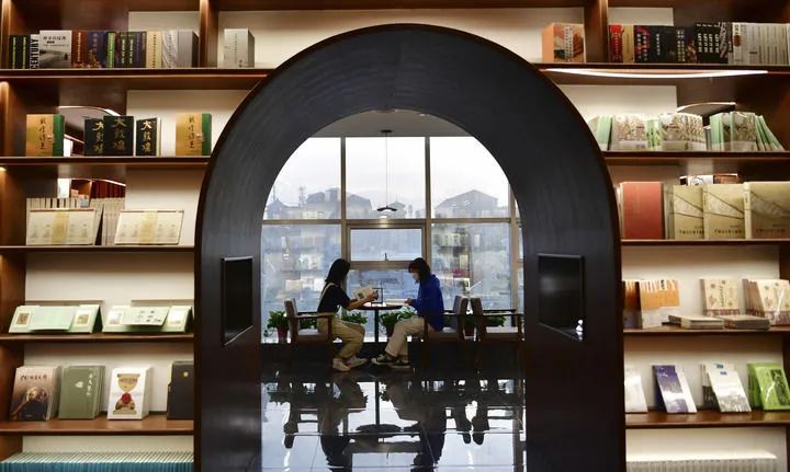 2022年4月21日,讀者在敦煌書局閱讀區(qū)看書。新華社記者 陳斌 攝