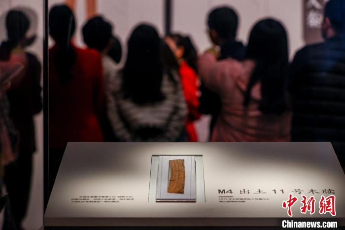 云夢睡虎地4號(hào)墓出土的木牘在湖北省博物館展出。中新社記者 張暢 攝