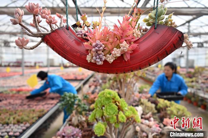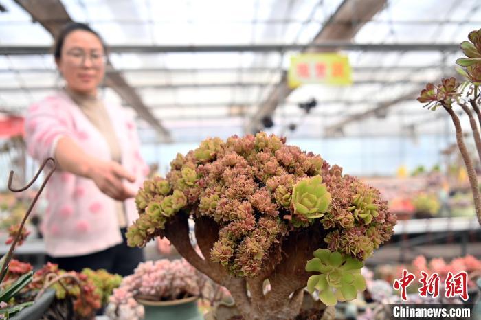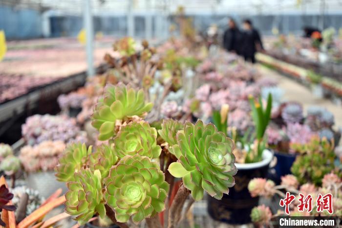 3月12日,在甘肅省蘭州市紅古區(qū)鑫源現代農業(yè)科技示范園種植大棚內種植的多肉植物。中新社記者 九美旦增 攝