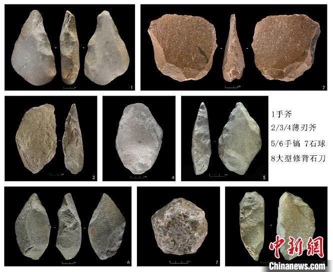 圖為河南汝州溫泉舊石器時(shí)代遺址出土的阿舍利技術(shù)工具組合。河南省文物考古研究院供圖
