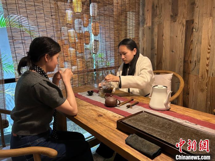 22歲的顧客吳聿嘉表示,“除了到戶外尋找春天,我們還喜歡在茶館感受慢生活、松弛感的飲茶體驗(yàn),喝一杯春茶,品味舌尖上的春天”。